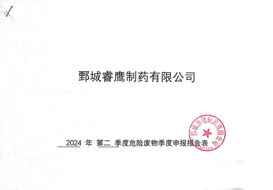 山东(dōng)睿鹰制药集团有限公(gōng)司2023年度危险废物年报(bào)